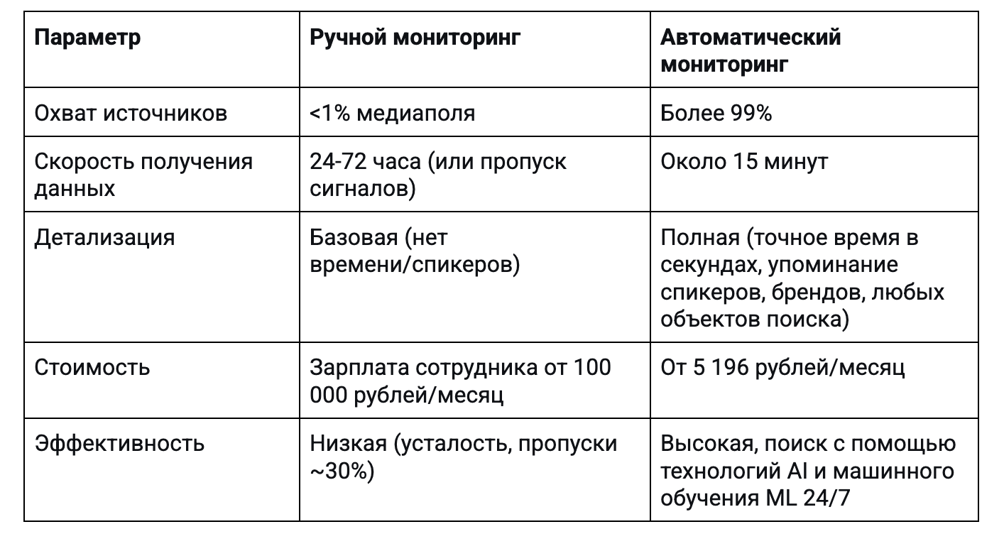 Вывод: ручной мониторинг эфира охватывает менее 1% медиаполя, а критические сигналы в социальных сетях и региональных СМИ остаются незамеченными до момента федерального скандала.